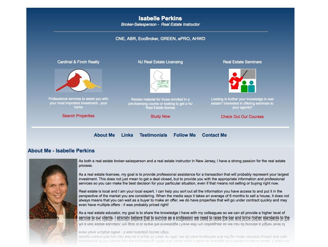 The site was to include her resume, testimonials, contact information and more. Again this site was done using CSS with some table structures so my mother could edit it more freely.