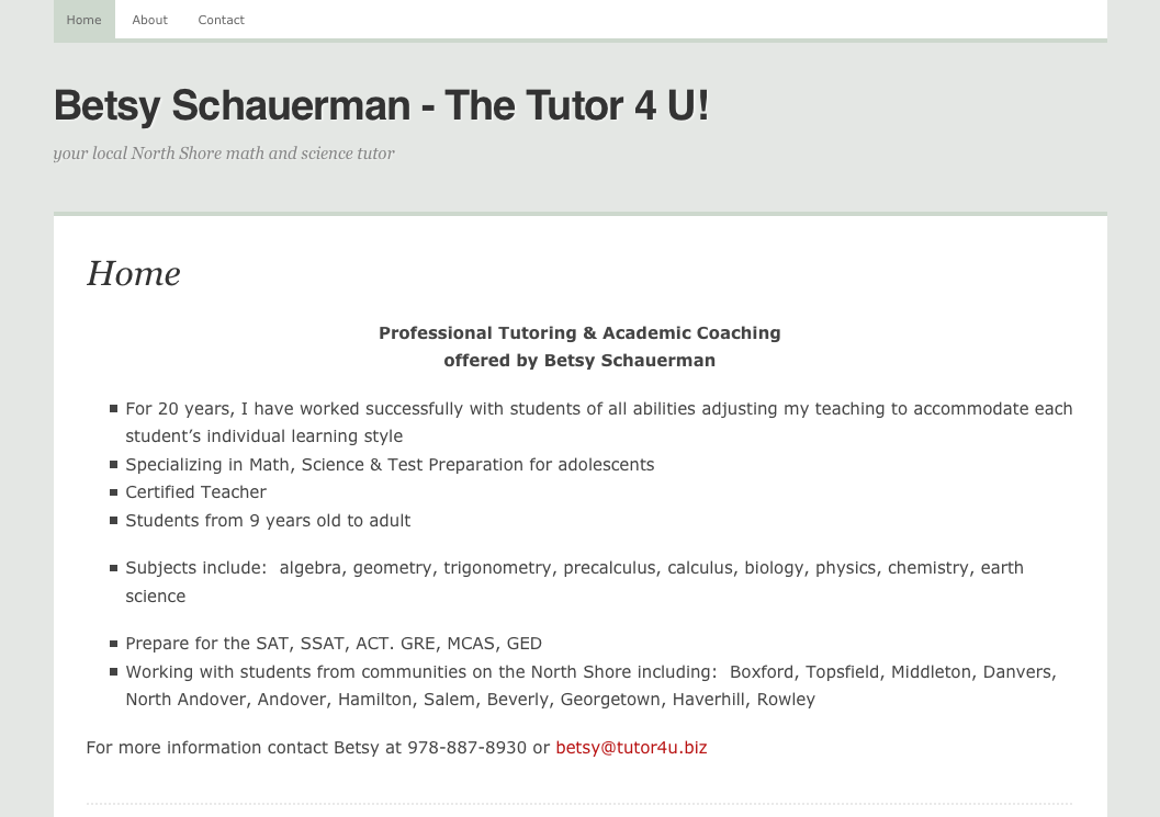 This website was created for a tutor in the North Shore region of Massachusetts. The tutor wanted to have a site so that they could be found online.